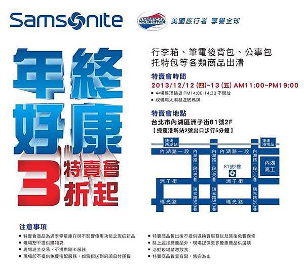 Samsonite集團2013年第一次也是今年最後一次的特賣會,趕緊把握囉!